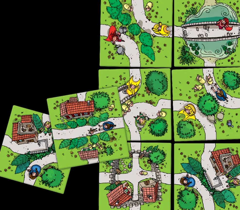 The city of Carcassonne is celebrating its national holiday. As is the tradition, people mark the occasion by setting the city’s sheep, hens, and cows loose in the streets. From dawn till dusk, the children of Carcassonne have the time of their lives trying to bring these animals back home. With My First Carcassonne, players of all ages can experience a new version of the modern classic. Each turn, you place a tile to build the Medieval city of Carcassonne. As the game progresses, the children of Carcassonne—illustrated on the cards—fill the streets trying to catch animals. Whenever you close a street with one or more children marked with your chosen color, you get to put pawns on the board. The first player to place all their pawns wins the game!