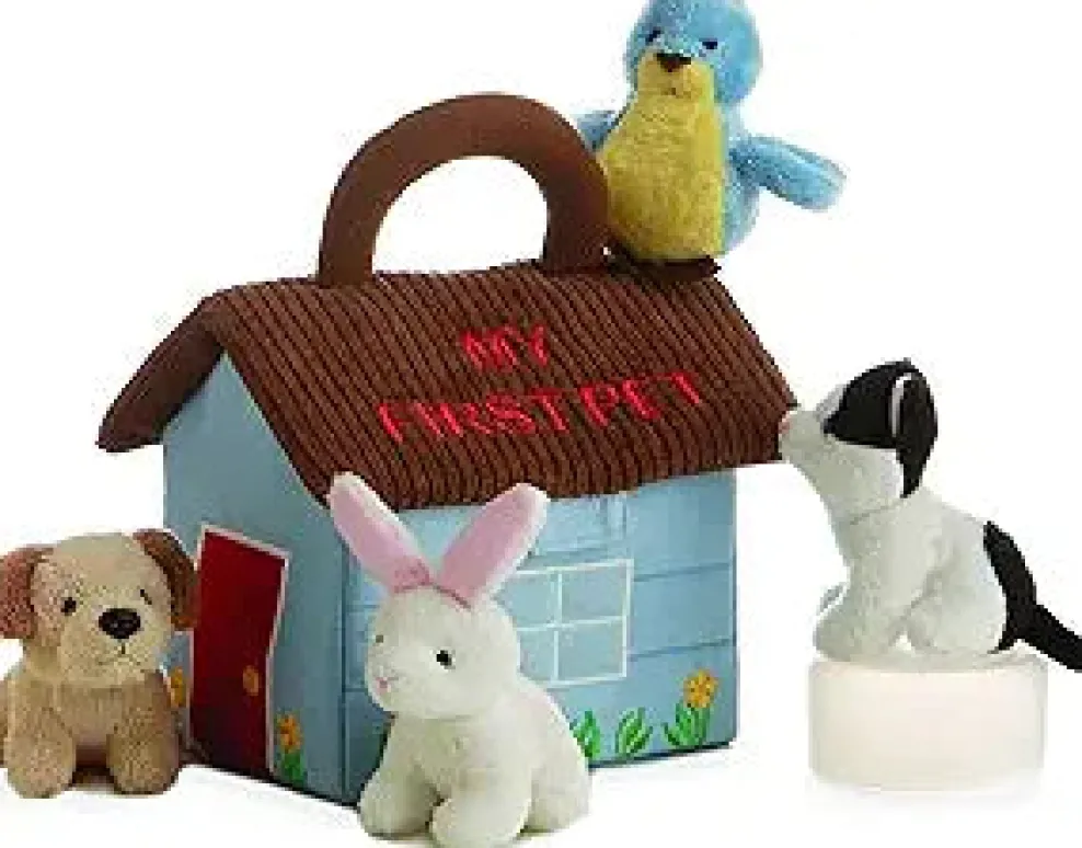 Aurora’s award winning Baby Talk play sets encourage speech and learning through shape, sound and alphabet letter association. My First Pet features a house shaped carrier with “My First Pet” embroidered on it and contains soft toys that include a Bunny rattle, Bird with squeaker, Dog with barking sound, and Cat with meow sound. For ages 9 – 18 months. Aurora World is an industry leader with over 30 years of experience designing and manufacturing innovative, high quality plush products.