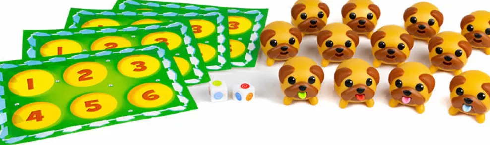 This game comes with 12 Pugs, 4 Parklet cards, 2 Lollipop dice, and rules.