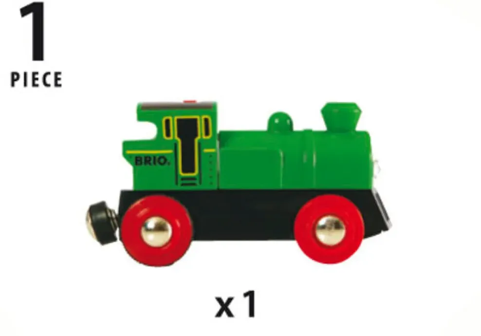 Full steam ahead with this classic, green battery powered engine. The forward and reverse functions as well as headlights that light up, makes this a must-have for any railway.