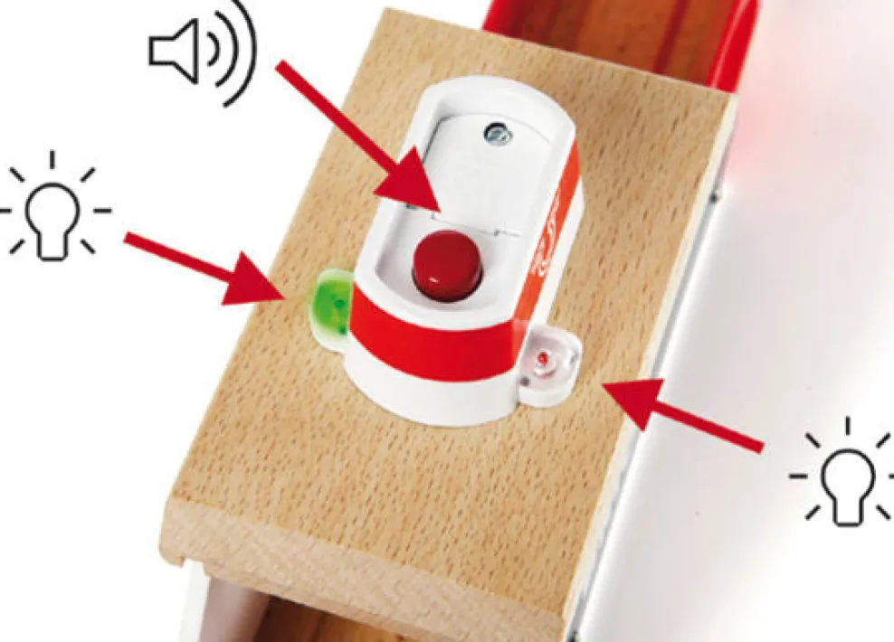 Ship Ahoy! Trains don’t run on water, but ferries do. So transport the train on to dry land with the BRIO Ferry. The ship features light and sound that is activated with a simple push of a button. With the two included docking tracks, the ferry door is opened upon arrival.