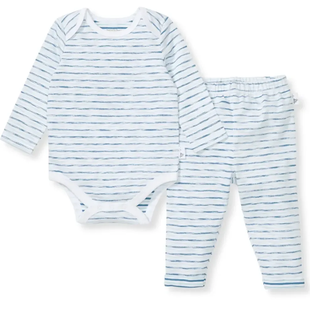 Add a touch of flare to your little bee’s wardrobe with this striped bodysuit and pants set.