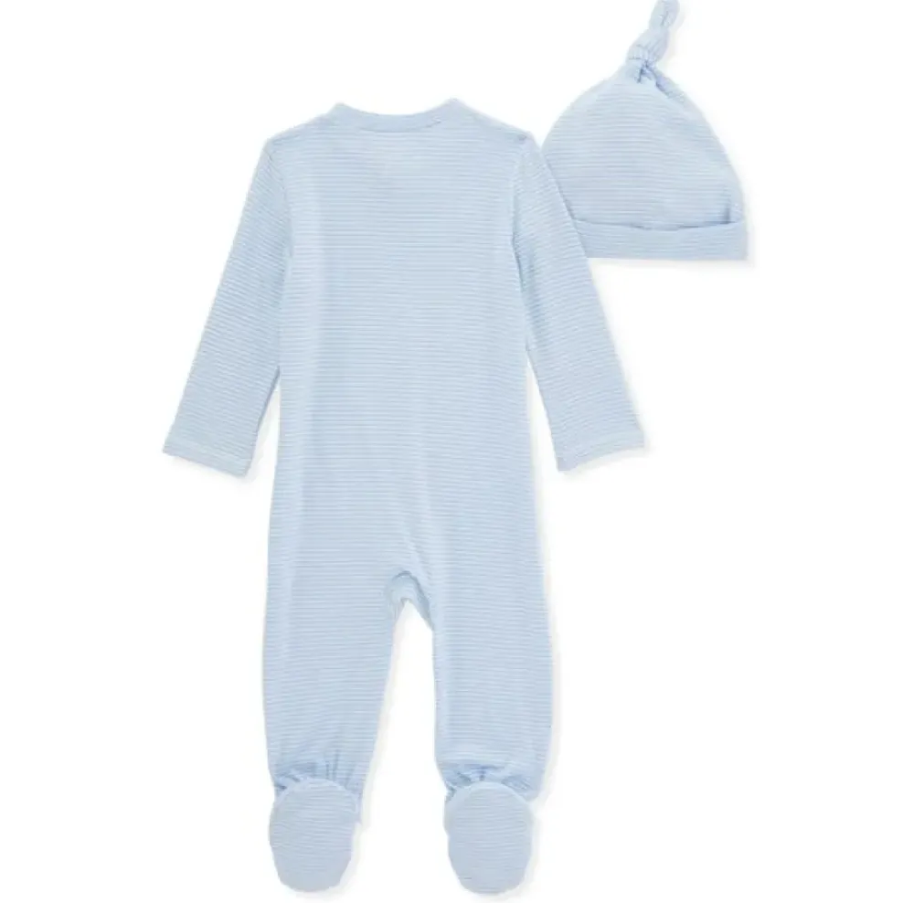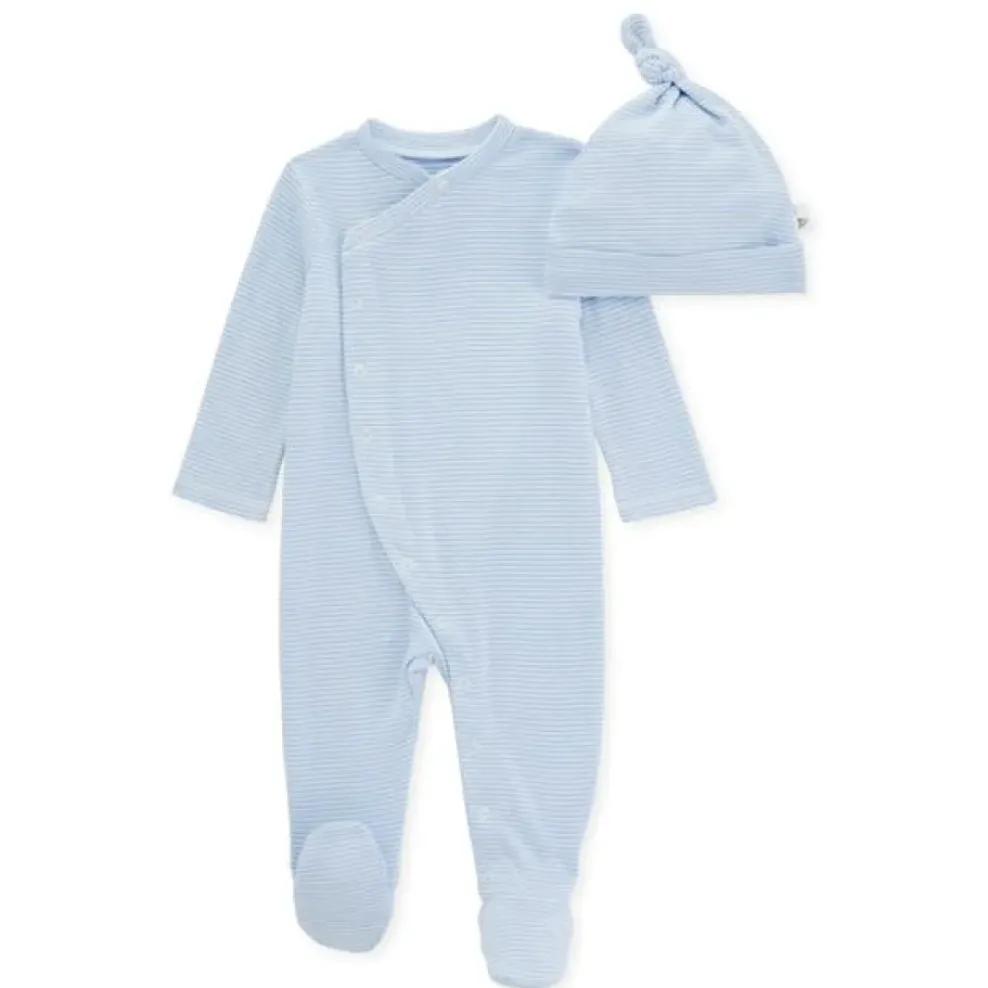 Burt’s Bees Baby Burt’s Bees Organic Baby Micro Stripe Jumpsuit & Knot Top Hat Set Blizzard Sale