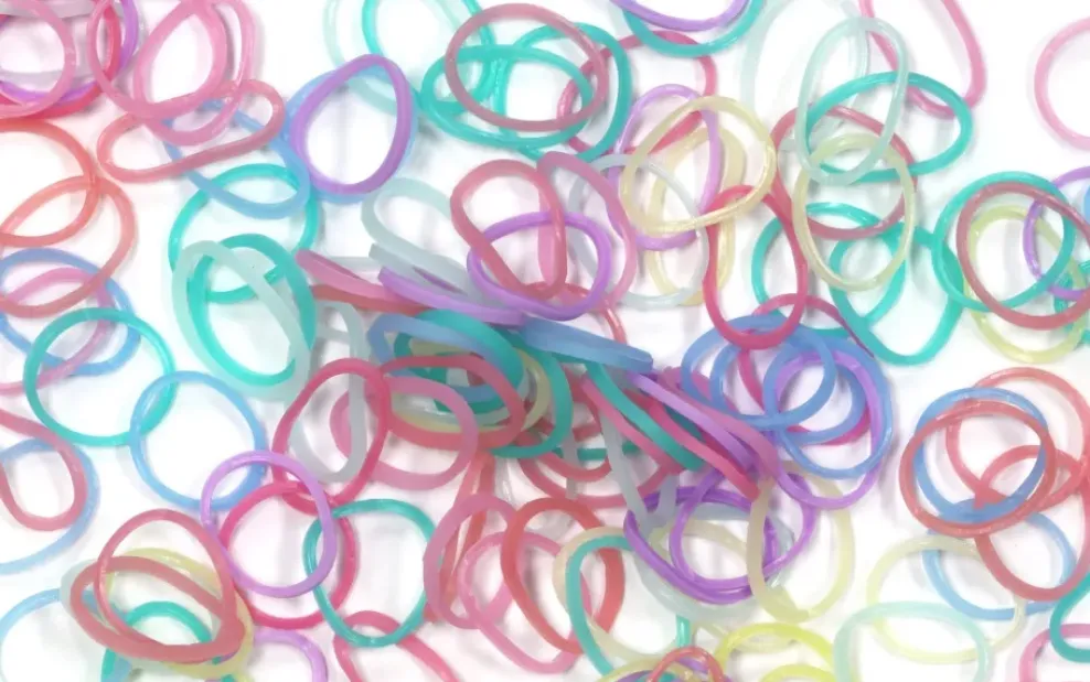 600+ non-latex rubber bands & a bag of 24 C-clips.