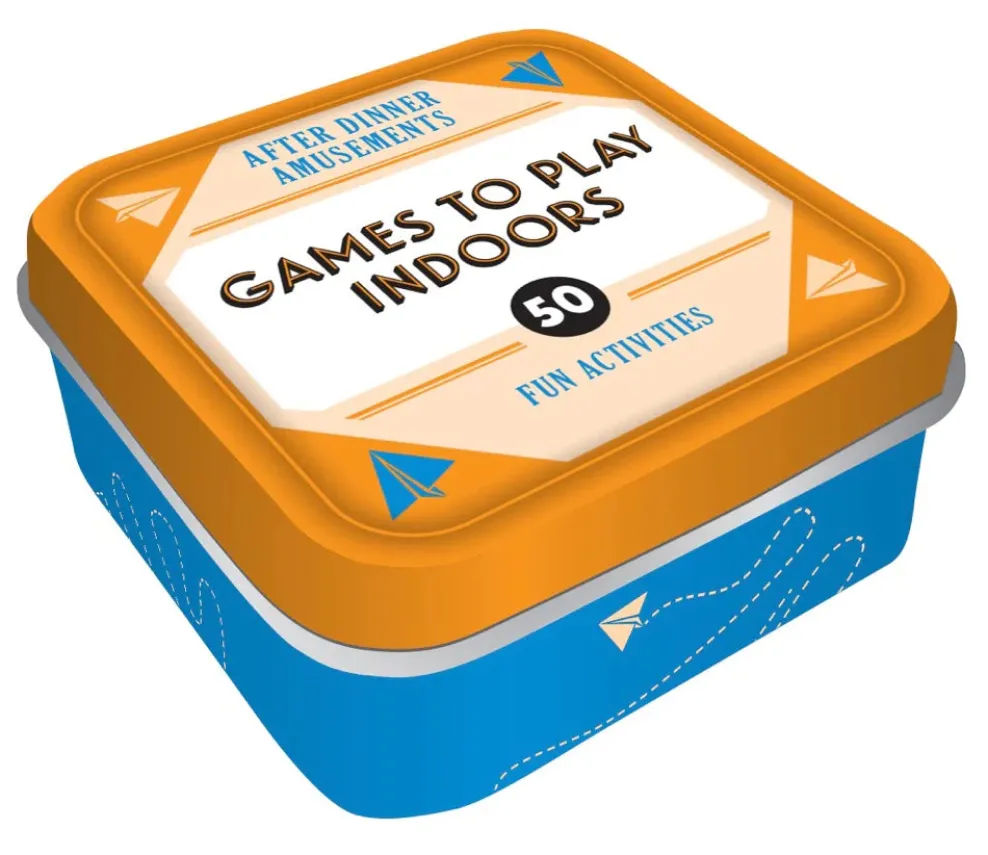 The indoor games in this tin are designed to provide easy, screen-free, fun-to-play activities to entertain kids of all ages. Whether you’re over at a friend’s house, visiting the grandparents, or in your own living room, simply pull a card and start playing!