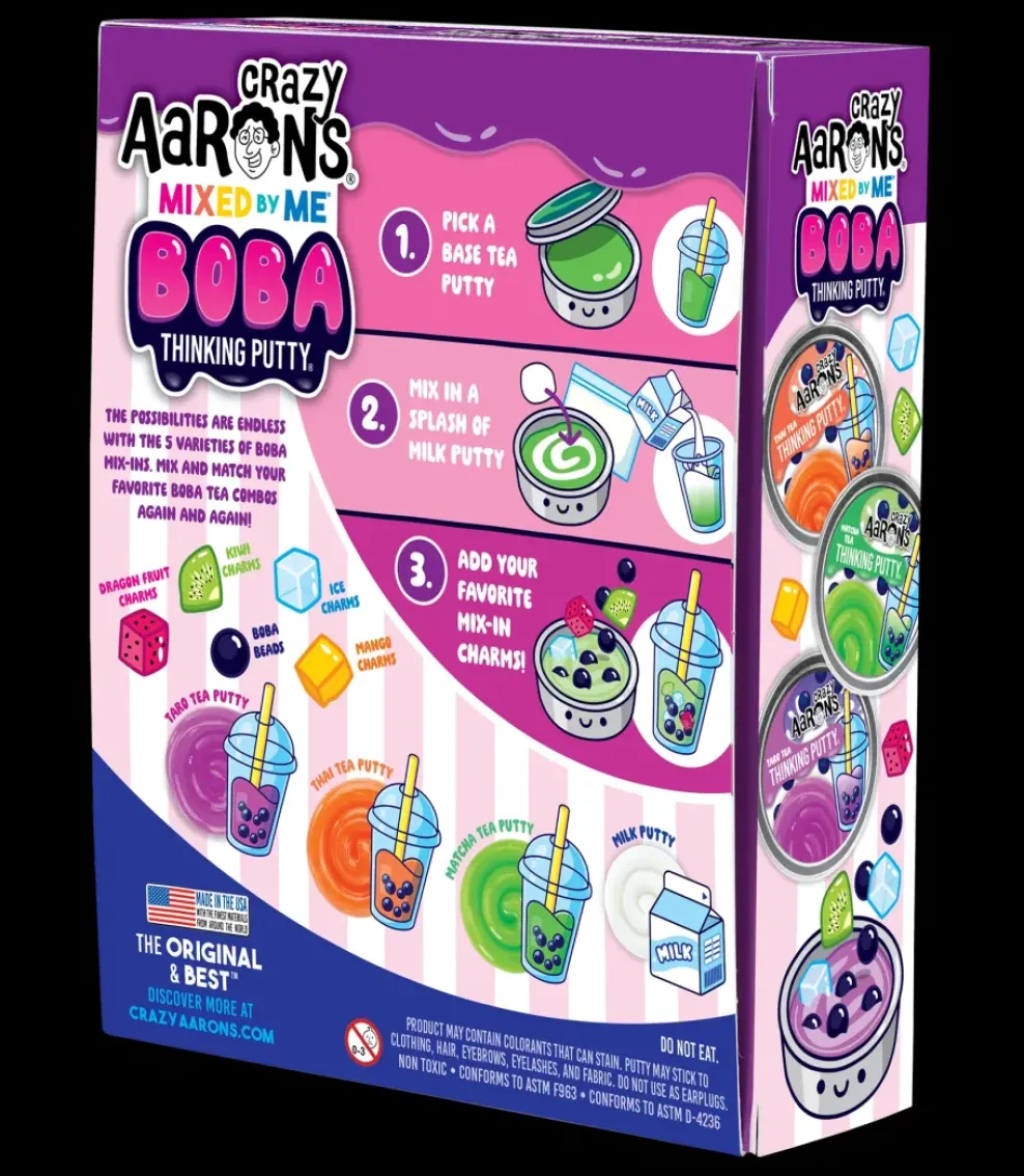 Who doesn’t love Boba Tea? Create your own Boba Tea putties with the Crazy Aaron’s® Mixed by Me® Boba Thinking Putty® Kit. With three different tea base options and five varieties of fruit-themed mix-ins, the Boba putty possibilities are endless!