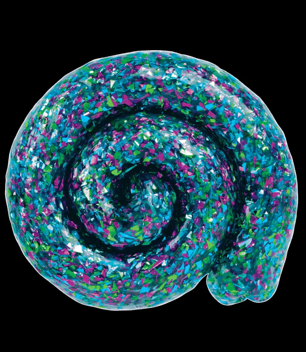 Color: Clear putty with green, purple, and blue irregular shaped glitter pieces
