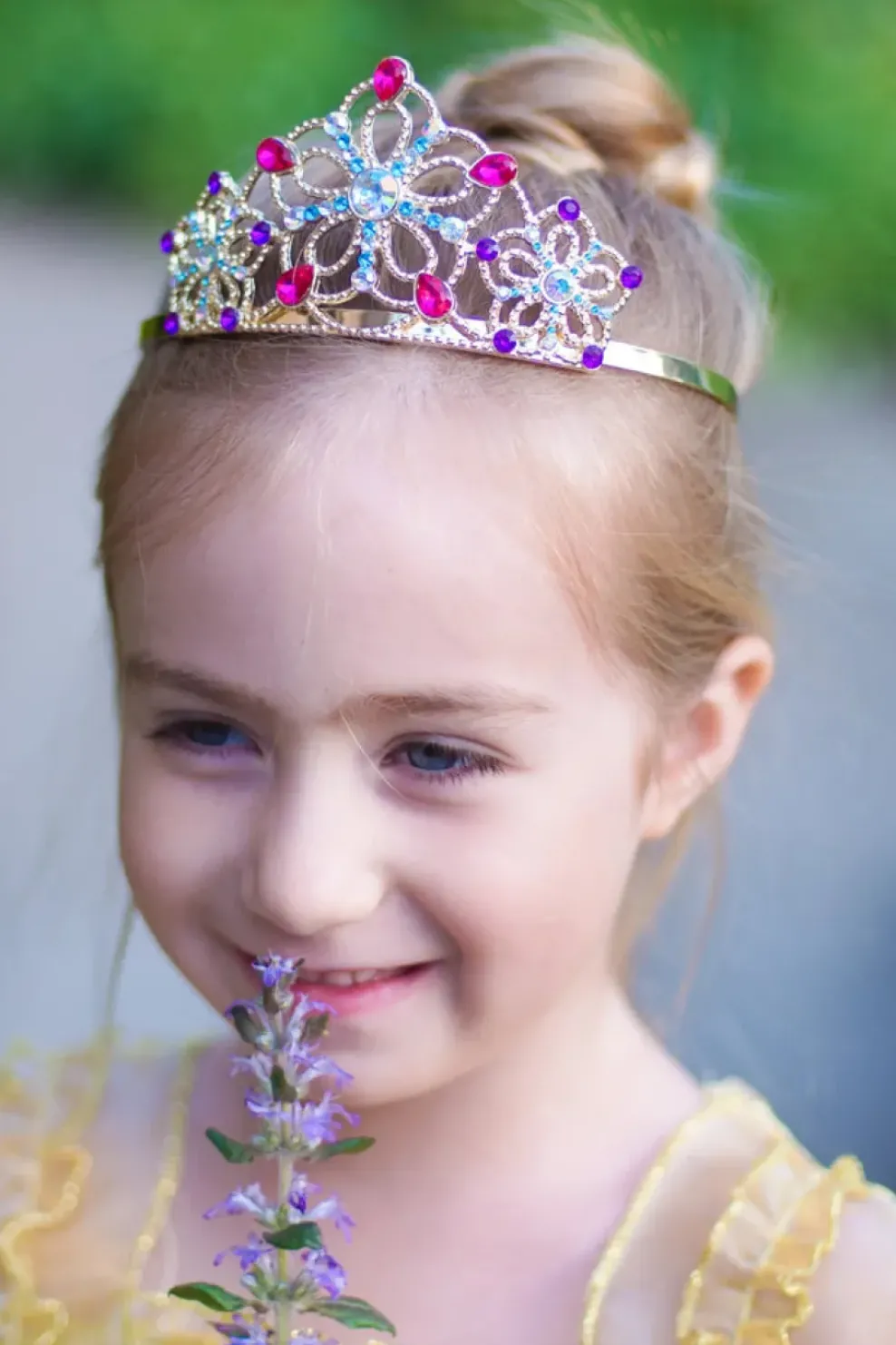 A tiara makes you feel special, adds that extra needed flare to regular school outfits. So why not go all the way! Our gold metal tiara is bedazzled with jewels and gems. Featuring faux rhinestone and gem detailing, this gold tiara completes any princess costume or just for everyday wear depending on your princess needs.