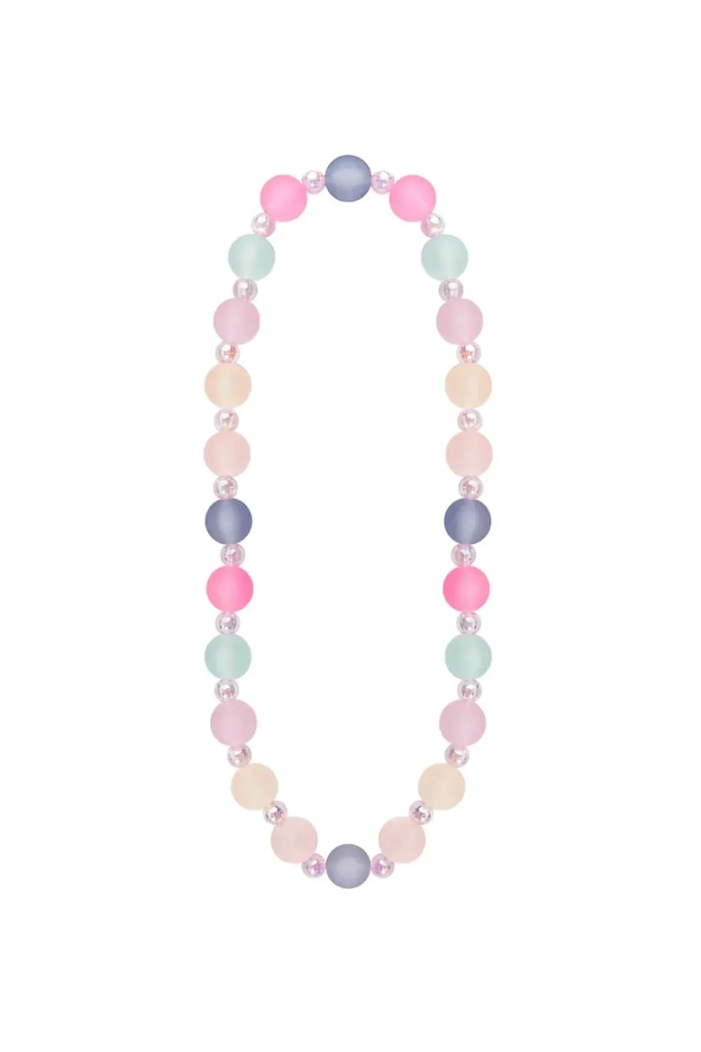 This bumpy bead bracelet is made with blue, pink, and purple frosted beads, alternating between smaller clear beads. Be sure to check out its matching bracelet!
