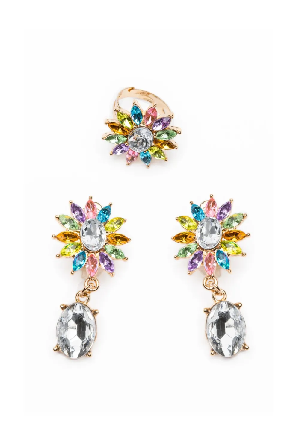 An addition to our extravagant jewelry set: The Victoria! This 3 piece jewelry set includes clip on earrings and a matching ring. It is made with vibrant pink, blue, green, and purple jewels that will make your little one feel like royalty! Not only is this jewelry set extravagant, but it also comes in a beautiful box with magnetic closure that can be repurposed to store all of your kiddos’ extravagant jewels. Make your little one feel extra special with these royal jewels!