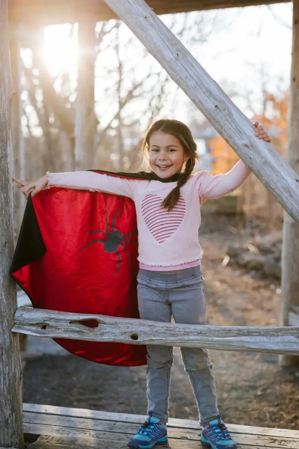 Introducing the Kids Reversible Spider Bat Cape, a captivating cape proudly made in Canada! On one side, your little hero can don the iconic spider emblem, inspiring a sense of agility, cunning, and spider-like abilities. Flip it over, and they’ll unveil the mesmerizing bat symbol, ready to soar through the skies with unparalleled strength and nocturnal prowess. The vibrant colors and intricate stitching bring these legendary characters to life, making every adventure more thrilling.