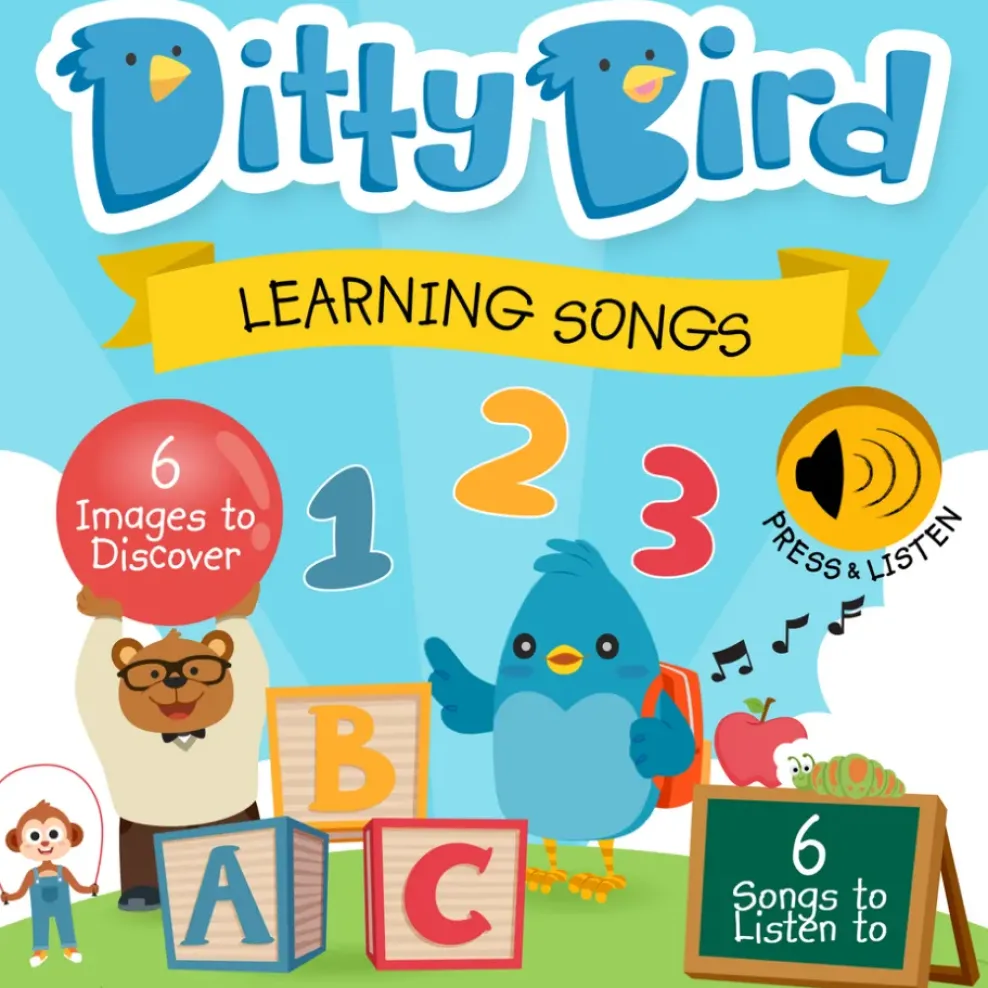 An interactive musical songbook for baby, toddler, 1-3 years old: read, listen and sing along as ditty bird sings your favorite songs.