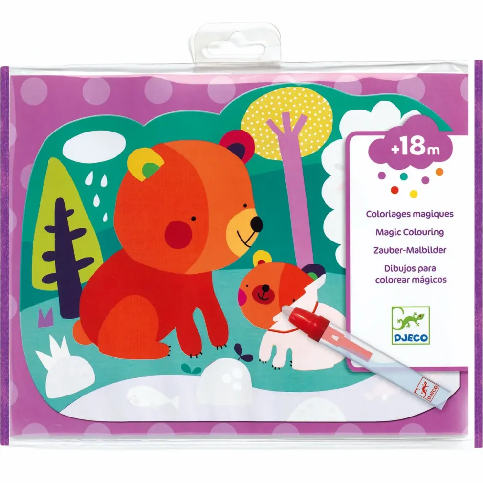 A water-based coloring set specially designed for little ones aged 18 months and over. Children use the water-filled pen to color in the white areas and discover what is hiding underneath. Suddenly, patterns appear and the colors change – it’s like magic! Once the pages are dry, the fun starts all over again!