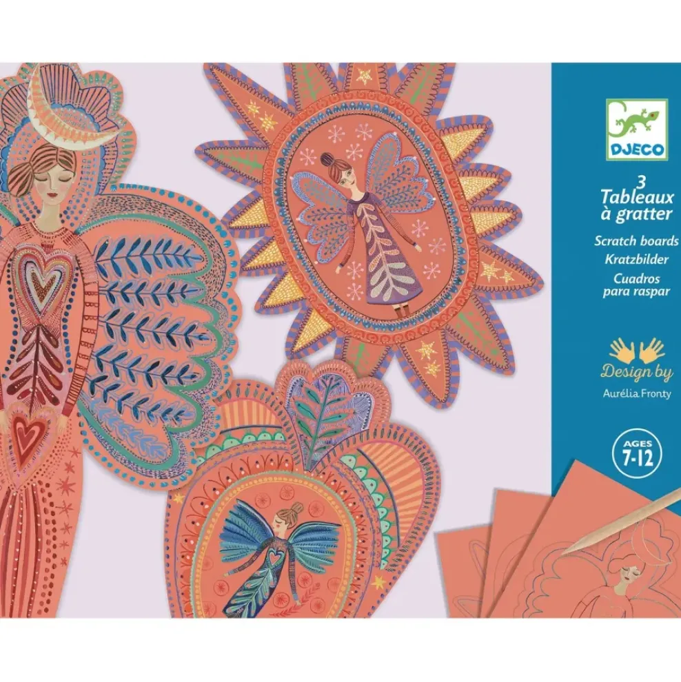 Contents: 3 scratch cards (8.66″ x 11.42″ ), 1 double-ended wooden stylus, 1 booklet with step-by-step explanations in color.