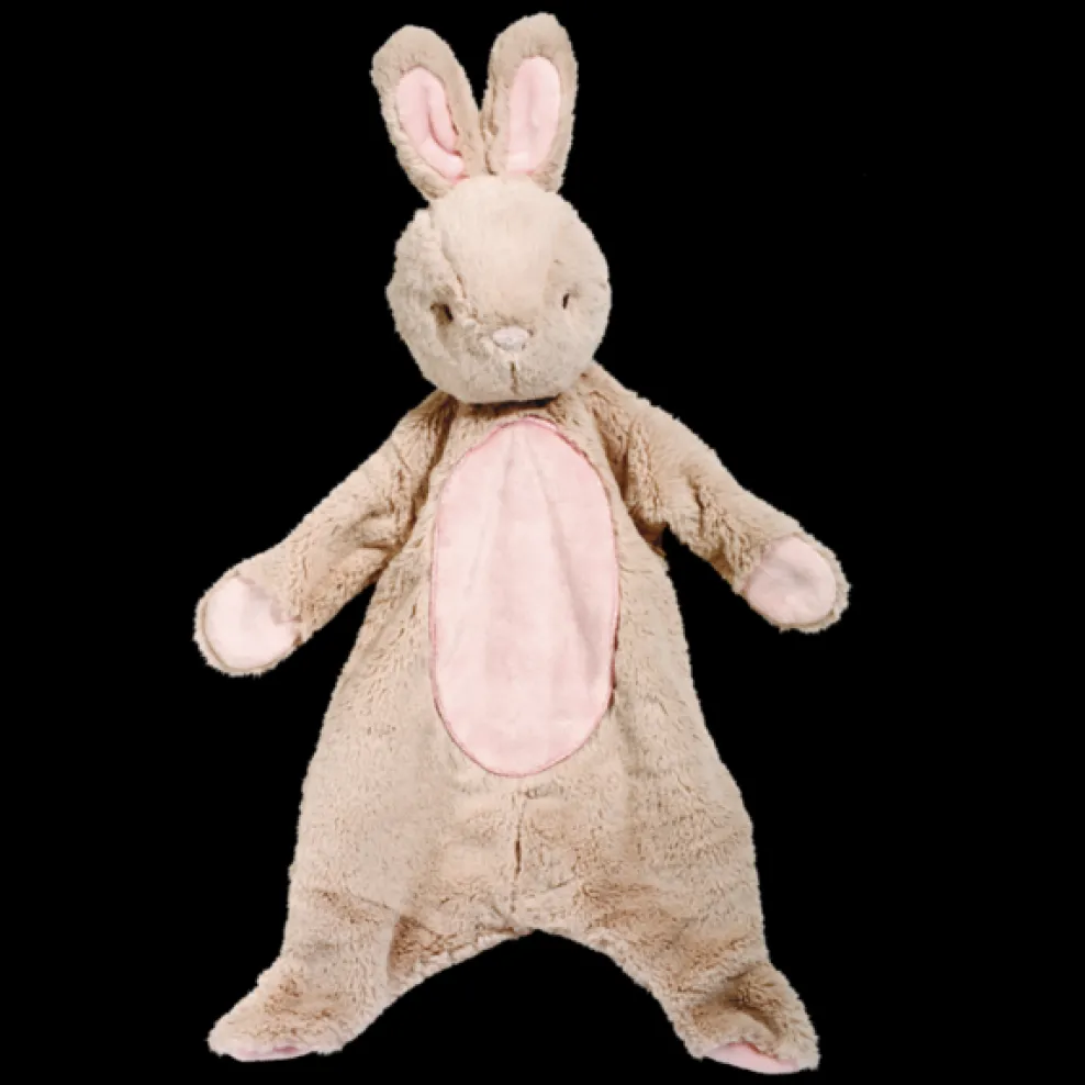 19″ long Bunny Sshlumpie is amazingly soft and cuddly! Sweet embroidery details and coordinating piping make our Sshlumpies a long-time infant and baby favorite! Sshlumpies are a cross between a blanket and a stuffed animal– only without the stuffing. Great size for the stroller or to take-along, anywhere.
