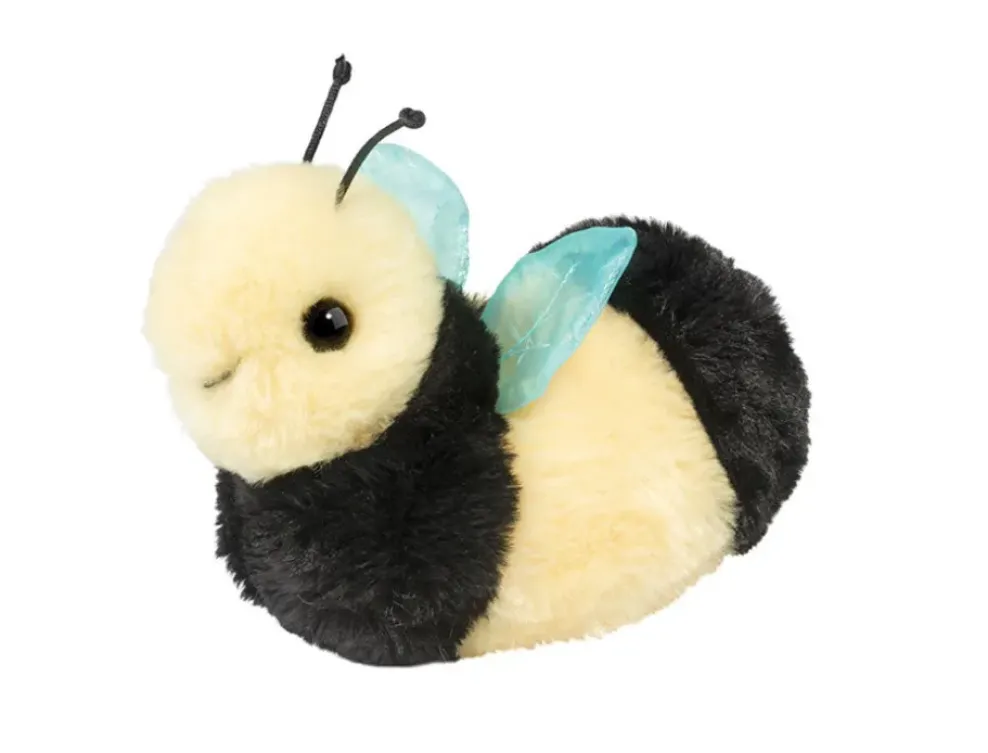 Chive the Bee is 7” long and ready to take flight. Looking like a very smiley bumble bee, this little one is as cute as can bee! His fluffy furry body is the traditional black and yellow stripe. A pair of see-through blue wings sit upon his back. He is really bee-utiful with his sparkling black eyes and attention-seeking antennas.