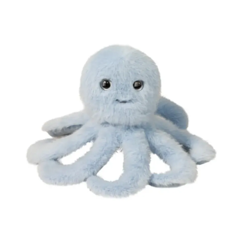 We’ve reimagined the charismatic Octopus as an adorable Mini stuffed animal! Crafted with ultra soft powder blue materials and lightly weighted with beans, this whimsical plush friend is a perfect little pick me up that belongs in your hands! Eight elegant tentacles extend from his body, each boasting a velvet textured underside and a small curl at their tip. He smiles playfully and his light colored eyes shine with a lifelike glow. What adventures lie in store for the two of you beneath the surface of the water? Follow this playful ocean dweller into an undersea world where the only limit to your fun is your own imagination! Our Mini Blue Octopus plush will delight animal lovers of all ages!