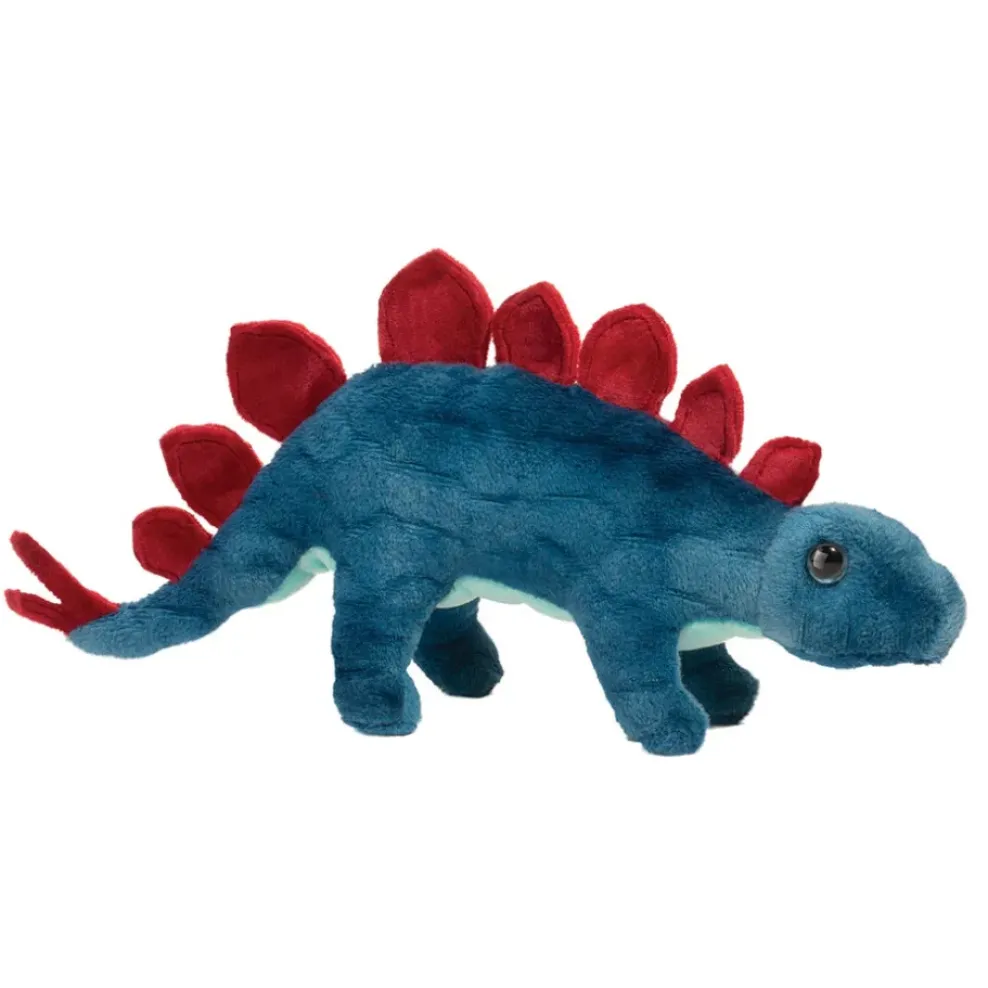 Hold all the excitement of the Jurassic in your hands with Tego the Mini Stegosaurus stuffed animal! Our rendition of this armored beast features textured blue plush materials and a pale turquoise colored underbelly. Velvet soft plates and tail spikes in a rich red color bring vibrance to Tego’s design. His lively expression is enhanced by light blue eyes that catch the light. With his four stout legs and rounded back, this little dino is ready for anything. Sturdy enough for boisterous play but soft enough for hugs, Tego the plush Stegosaurus will bring excitement to every imaginative prehistoric adventure!