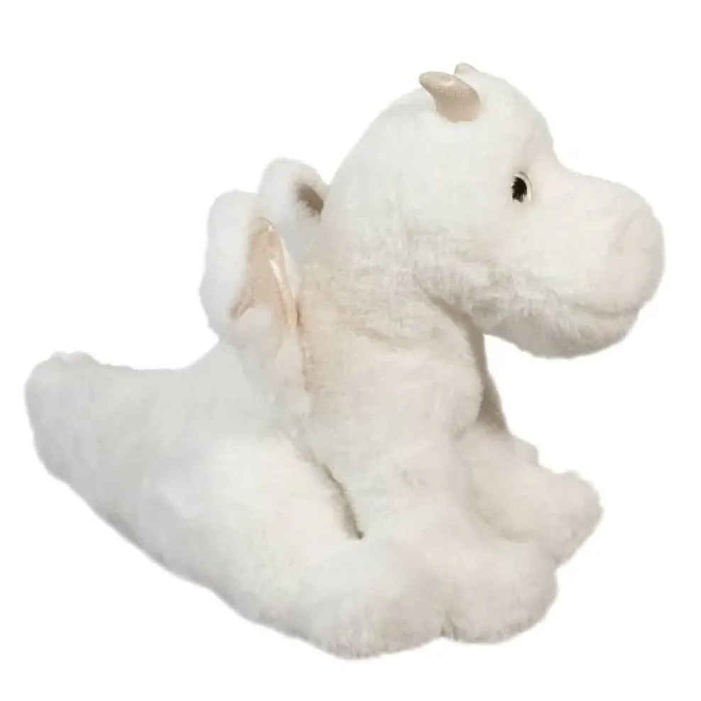 Snowy white plush fur lends Lukie the Soft White Dragon stuffed animal a magical appearance that will inspire a myriad of fantasy adventures! A gentle creature, Lukie would rather make friends than set fire to the nearby villages. His soft and engaging design depicts the pudgy, rounded form of a baby Dragon and will melt into your arms every time you pick him up for a hug. Beans in Lukie’s feet and rump add to his cuddly feel, while pale gold accents on his horns and wings make him that much more fantastical. Fall in love with Lukie’s wide-eyed innocent expression, there’s a whole world of fun for the two of you to explore!