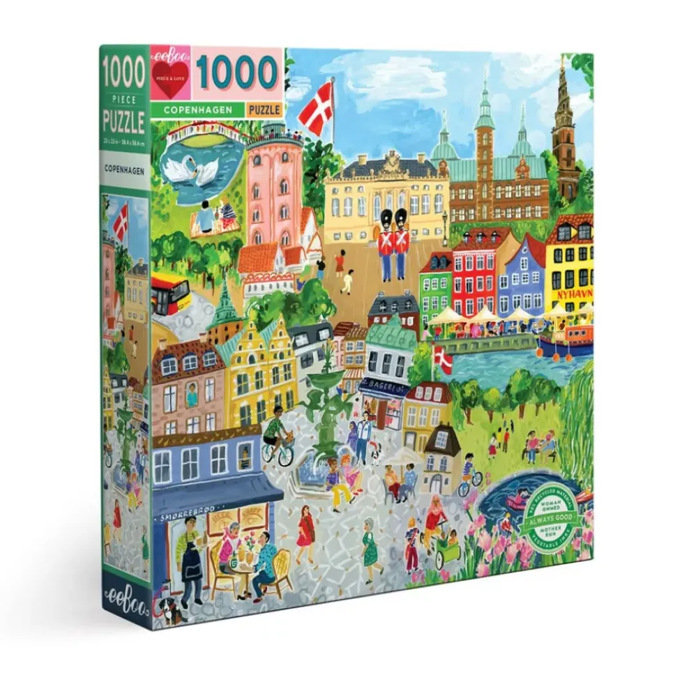 Spend time getting to know some of the landmarks and colorful neighborhoods of Denmark’s friendly capital in this homage to wonderful Copenhagen by Jennifer Orkin Lewis. Our 1,000-piece jigsaw puzzles are thoughtfully commissioned and beautifully designed to offer a screen-free, relaxing way to practice contemplative mindfulness or share a gentle cooperative activity with friends and family.