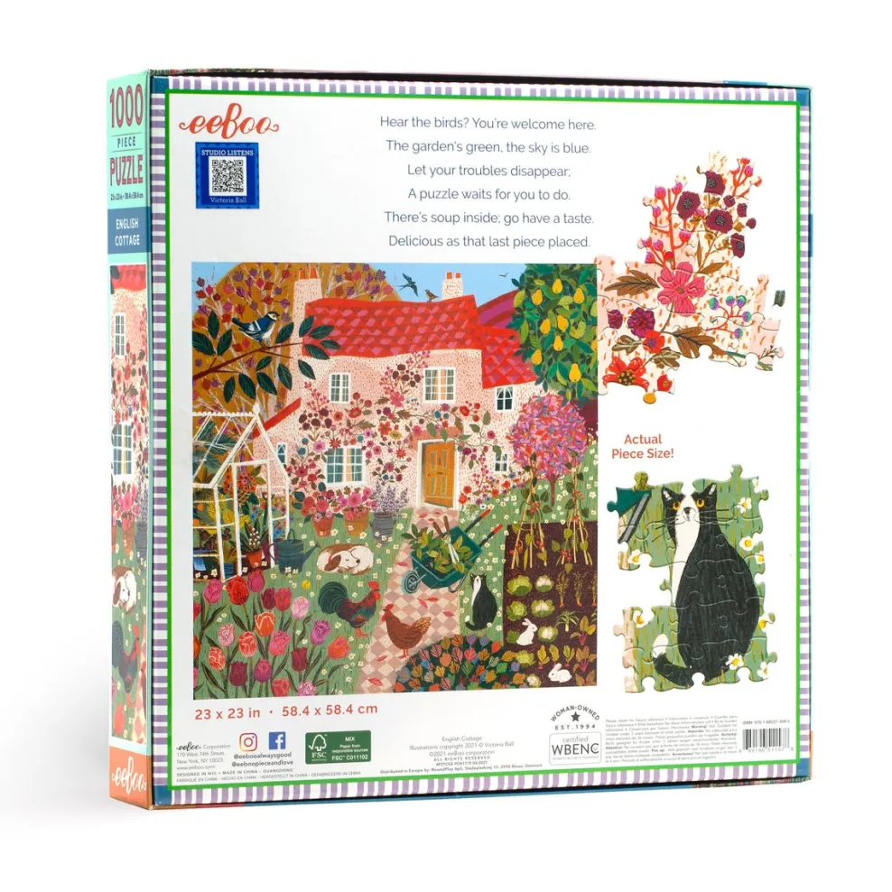 Piece together an afternoon walk along a path in the English countryside and discover this enchanted and colorful cottage. An open door invites you in for a spot of tea after puttering about in the flower and vegetable garden. Take a moment to enjoy the cat, the lounging dog, and chickens roaming freely among the tulips, all while little rabbits nibble in the garden. Feel the sunlight and smell the fresh earth. Beautifully illustrated by the English artist Victoria Ball.