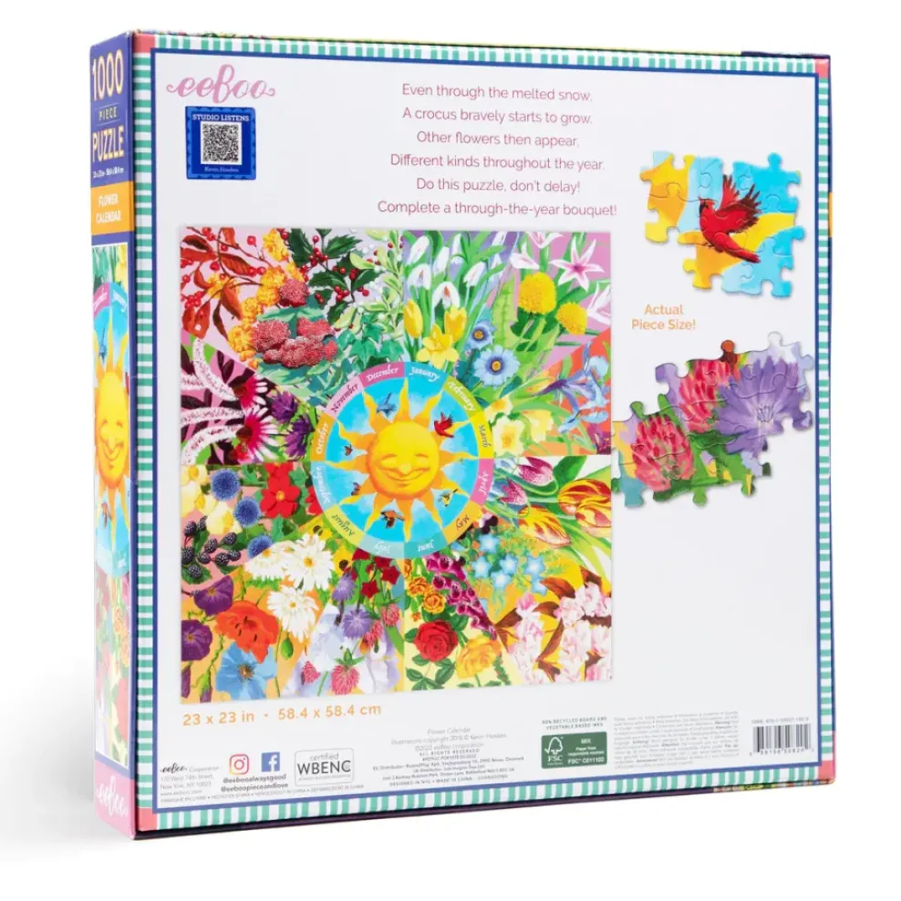 Celebrate nature’s treasures with this 1000 Piece Flower Calendar Puzzle beautifully illustrated by Kevin Hawkes to depict florals from every season. Starting from the earliest snowdrops of Spring to the symbolic mistletoes of Winter, this puzzle will take you on a green journey piece-by-piece. It even comes with an interesting guide to flower names. We can almost smell the roses!