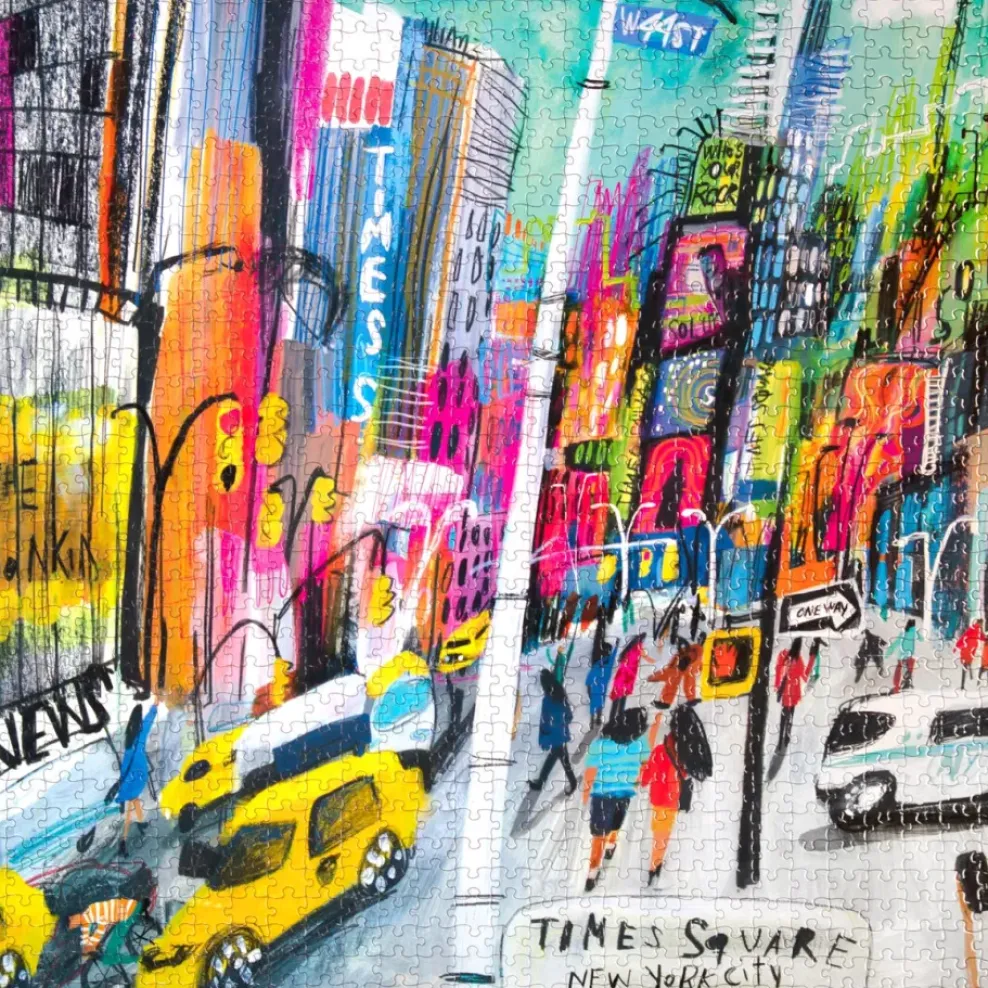 Relax at home while enjoying the colorful energy of New York City’s Times Square with this puzzle featuring the bright colors and the energetic graphic style of Spanish artist Maru Godas.