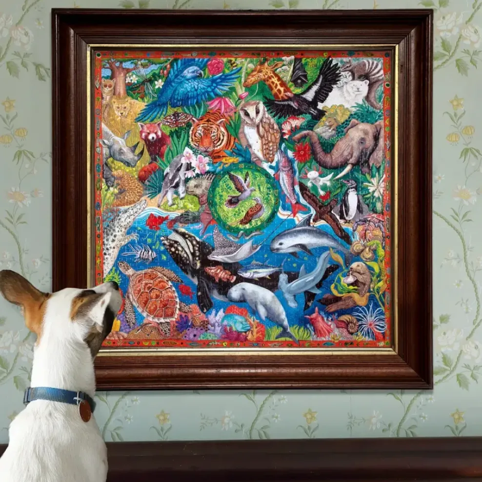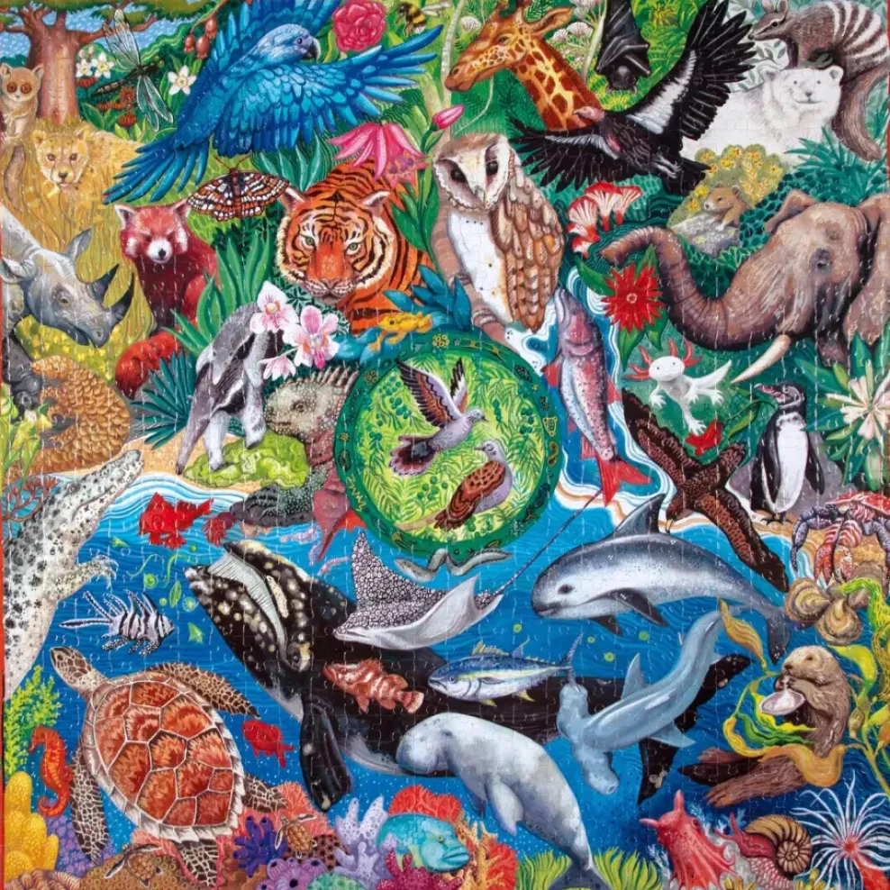 Artist Emma Lopes celebrates the fragile diversity of our planet with this gorgeous array of endangered species. Rich, carefully identified details (down to the micro-organisms that line the edges) will delight and educate the attentive puzzler.