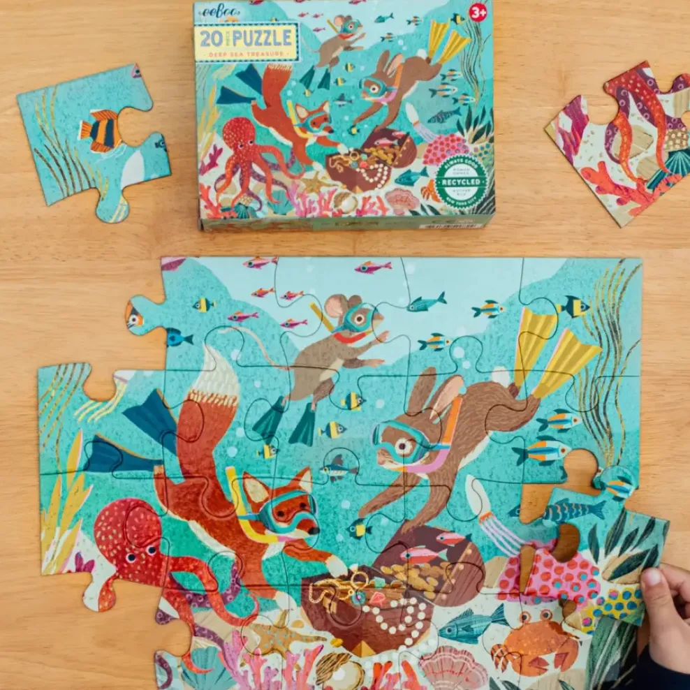 Dive into this whimsical underwater treasure hunt puzzle with thick jumbo-sized pieces! A challenging puzzle task that children are always proud of completing.