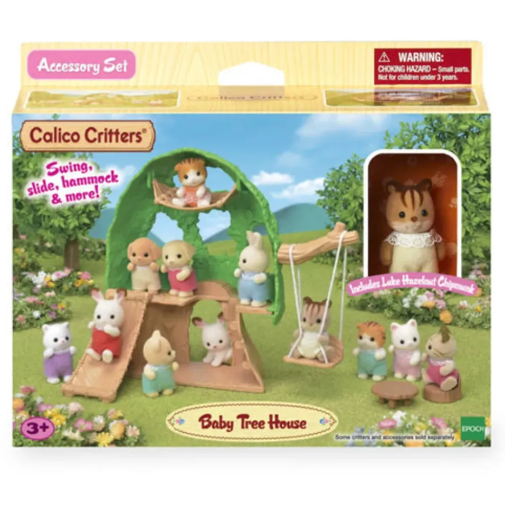 Baby Tree House includes a hammock, slide, and swing, so children can help babies play. They can also be posed to peek out through the leaves.