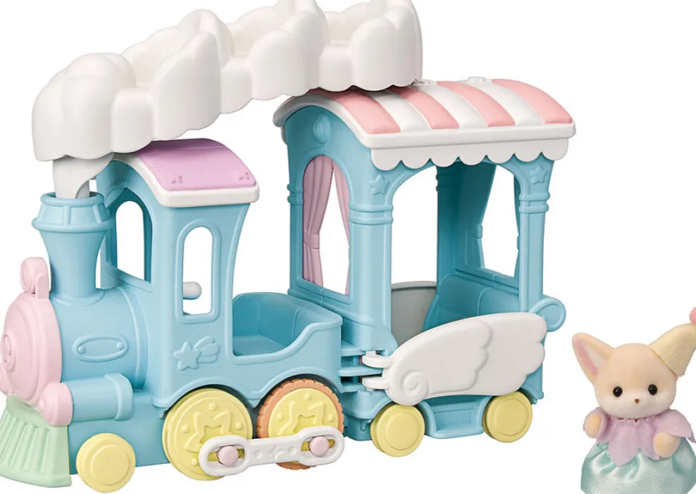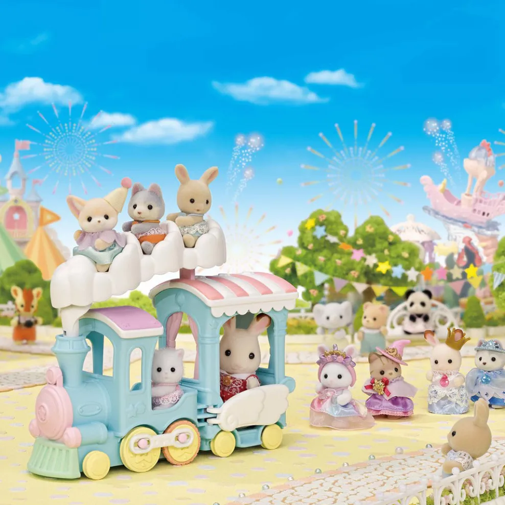 *Floating Cloud Rainbow Train features a lovely parade train with plenty of movable parts, along with the long-eared Fennec Fox baby.