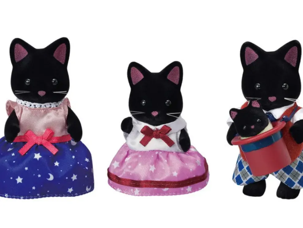 Midnight Cat father, Midnight Cat mother, Midnight Cat girl, Midnight Cat cradled baby, Silk hat (a total of 5pieces)