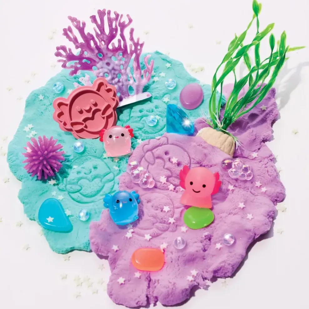 Contents Include: 2 colors of Cloud Clay Net Wt 0.2 lb (90 g) total, 2 glow axolotl figurines, squishy glow axolotl, 4 glow in the dark rocks, faux coral, aquarium plant, bubble beads, 1 gem, axolotl stamp, spiky ball, glow in the dark star confetti, and instructions. Contents may vary.