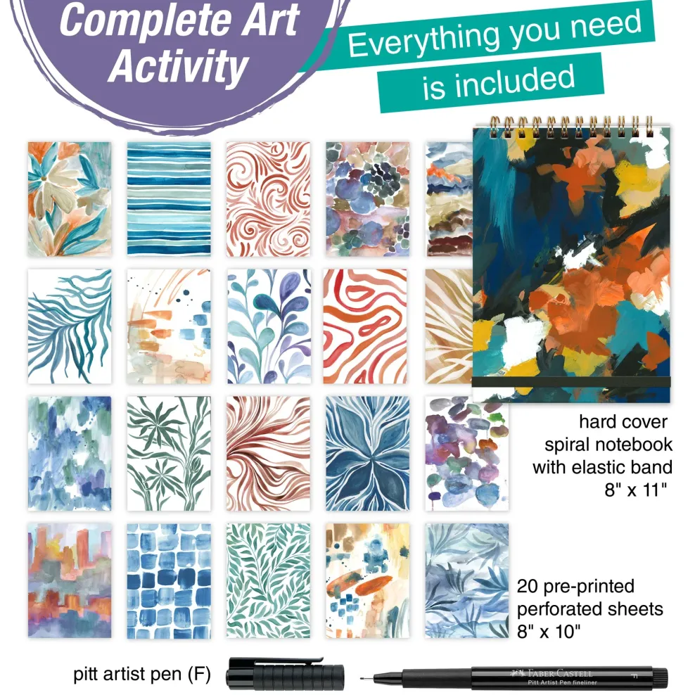The pre-printed watercolor pages will inspire open-ended creativity, while the helpful prompts provide just enough guidance to build creative confidence. Add your own drawings and watch the pages come to life, using the included Faber-Castell Pitt Artist Pen. Experiment with various techniques such as revealing hidden images, creating intricate patterns, adding floral elements and more. There are no strict rules in doodling, just let your creativity guide you.