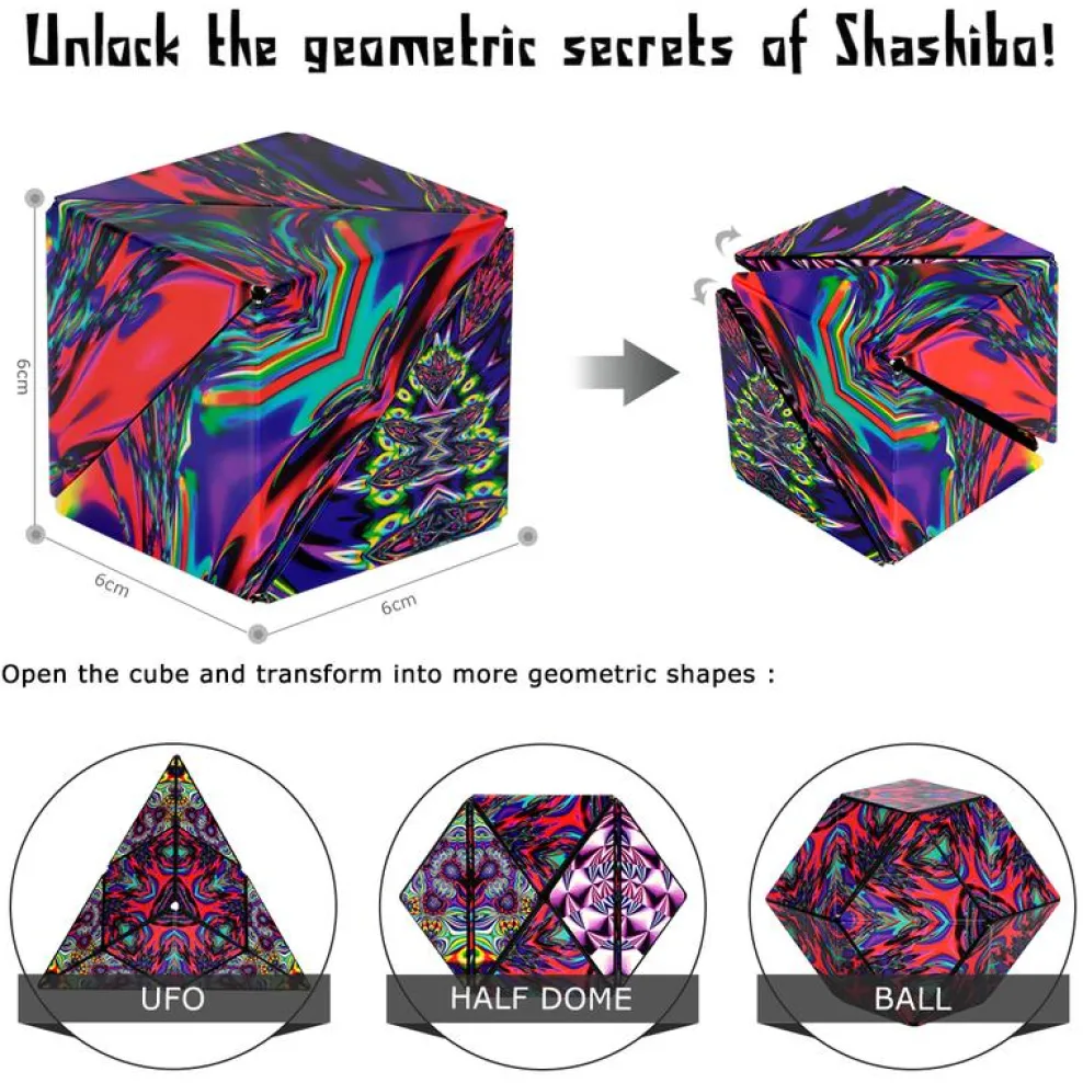 Unlock the mystery of Shashibo! Each Shashibo is powered by 36 rare earth magnets. 1 cube transforms into over 70 shapes. Combine 2 or more Shashibos to build larger shapes and create more possibilities. Can you master the shape shifting box?