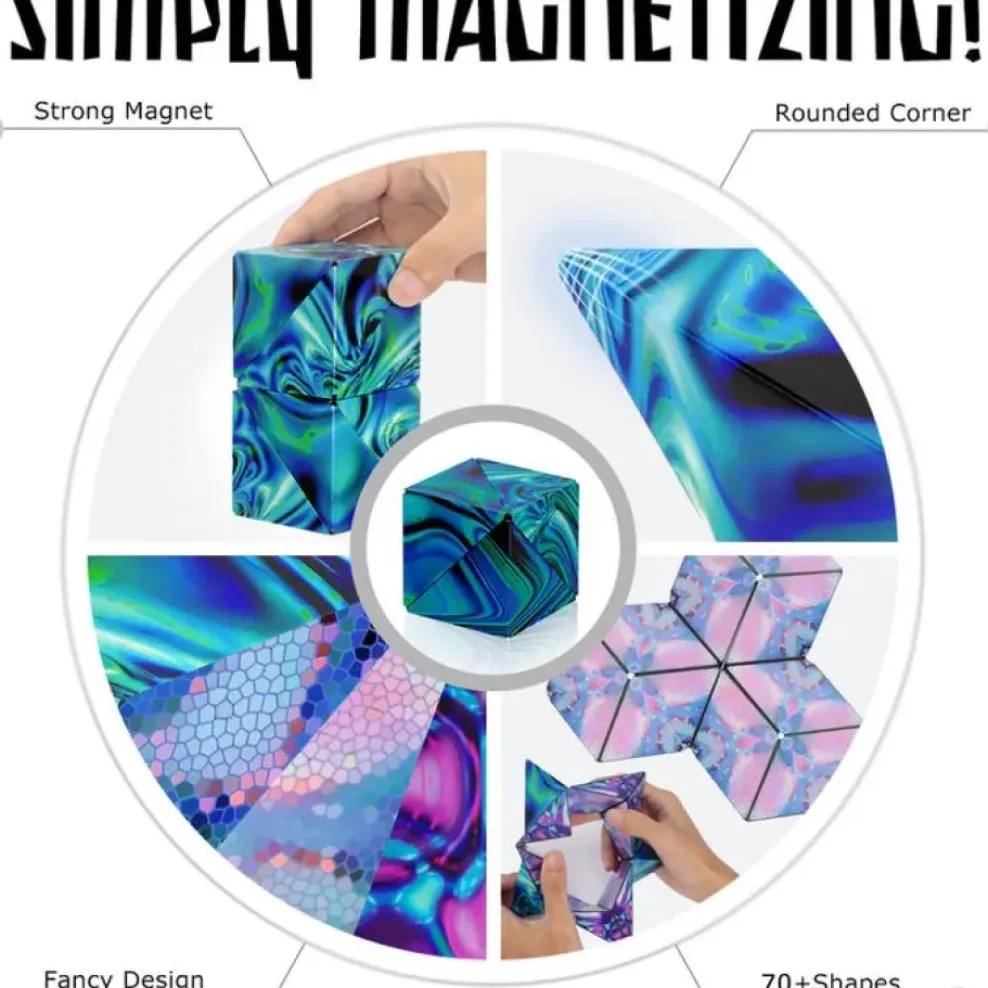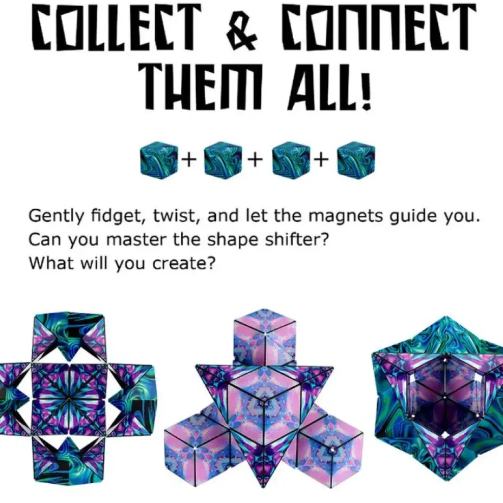 Unlock the mystery of Shashibo! Each Shashibo is powered by 36 rare earth magnets. 1 cube transforms into over 70 shapes. Combine 2 or more Shashibos to build larger shapes and create more possibilities. Can you master the shape shifting box?