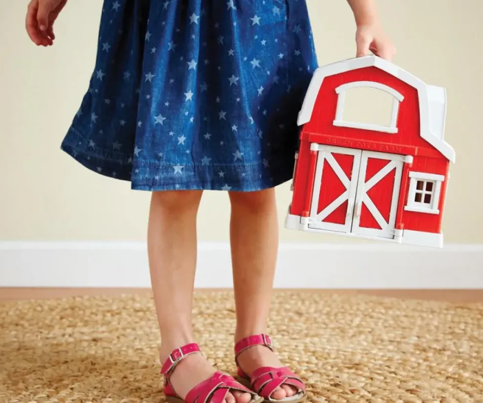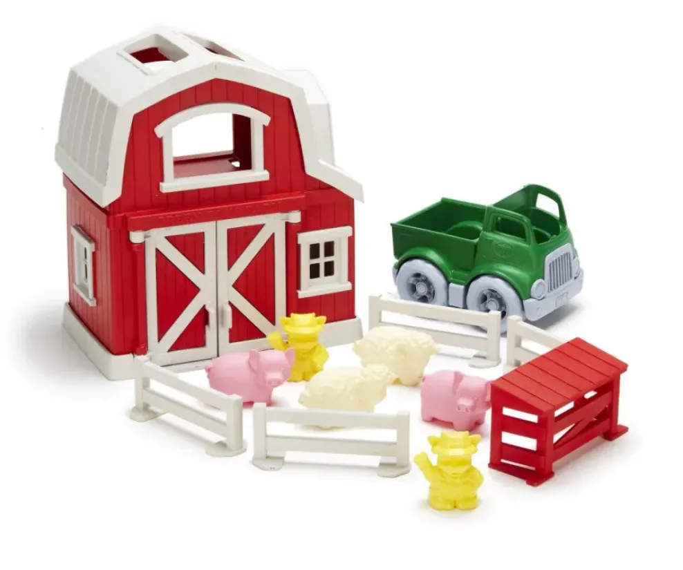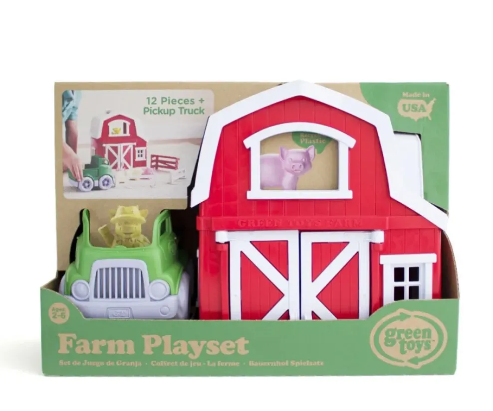 It’s a busy day on the Green Toys™ Farm! Inspiring cooperative play and communication, this playset includes a barn, pick-up truck, farmer cow characters, sheep, pigs, fences, and a hog shed for endless imaginative play. As little ones help the farmer cows open and close the barn doors, corral the pigs, and load the sheep in the back of the pick-up truck, they also develop fine motor skills and coordination. All pieces fit inside the barn, so clean-up and storage is a breeze, and the built-in handle makes it easy to take all the fun on-the-go.
