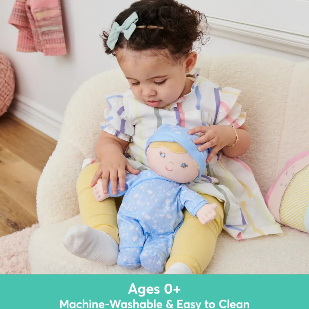This beautiful, diverse collection of 12” dolls is a great way to make imaginative doll play cuddly and fun! Each doll is crafted consciously with care, all-around softness, and a floral-patterned onesie outfit in an array of modern colors. They feature huggable and perfectly plump, playfully floppy bodies and hands crafted for little ones to hold easily, which makes them perfect partners for on-the-go play. Each doll features embroidered facial details and is perfect for all ages, newborns and up.