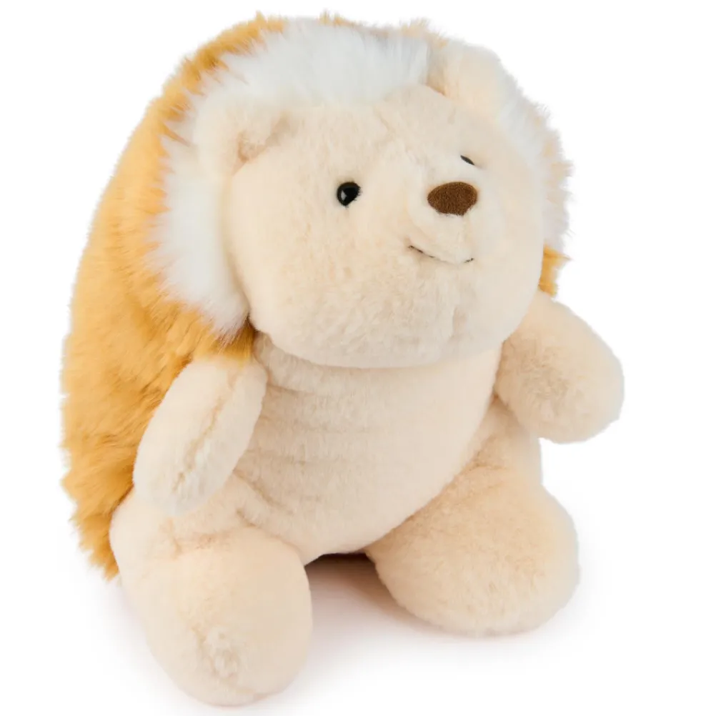 HEDGEHOG PLUSH: Tea is a beautifully crafted hedgehog with super-soft chestnut-colored plush material. This crescent-shaped hedgehog sits at 10` and has a curved shape designed to look into your eyes, making a special, cuddly moment of every squeeze!