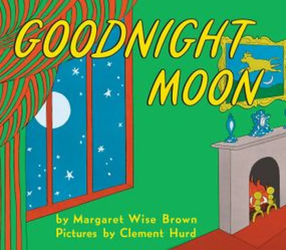 In a great green room, tucked away in bed, is a little bunny. “Goodnight room, goodnight moon.” And to all the familiar things in the softly lit room—to the picture of the three little bears sitting on chairs, to the clocks and his socks, to the mittens and the kittens, to everything one by one—the little bunny says goodnight.