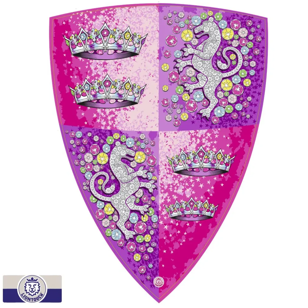 The Crystal Princess Shield is pink and purple with glitter and shine: perfect for any princess!