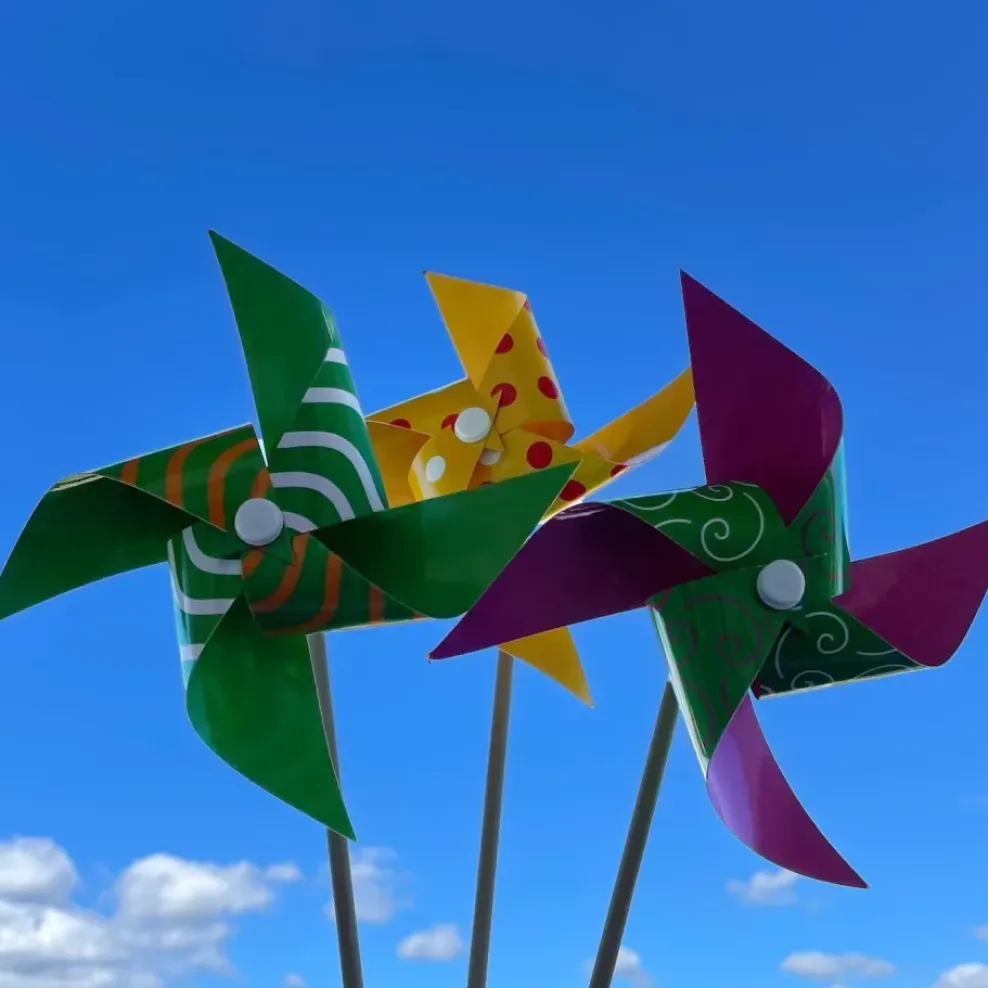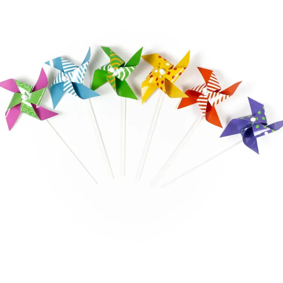 These big wheels are a perfect way to enjoy a windy day. Delight someone you know with these bright fun pinwheels. They make great party favors or gift toppers.