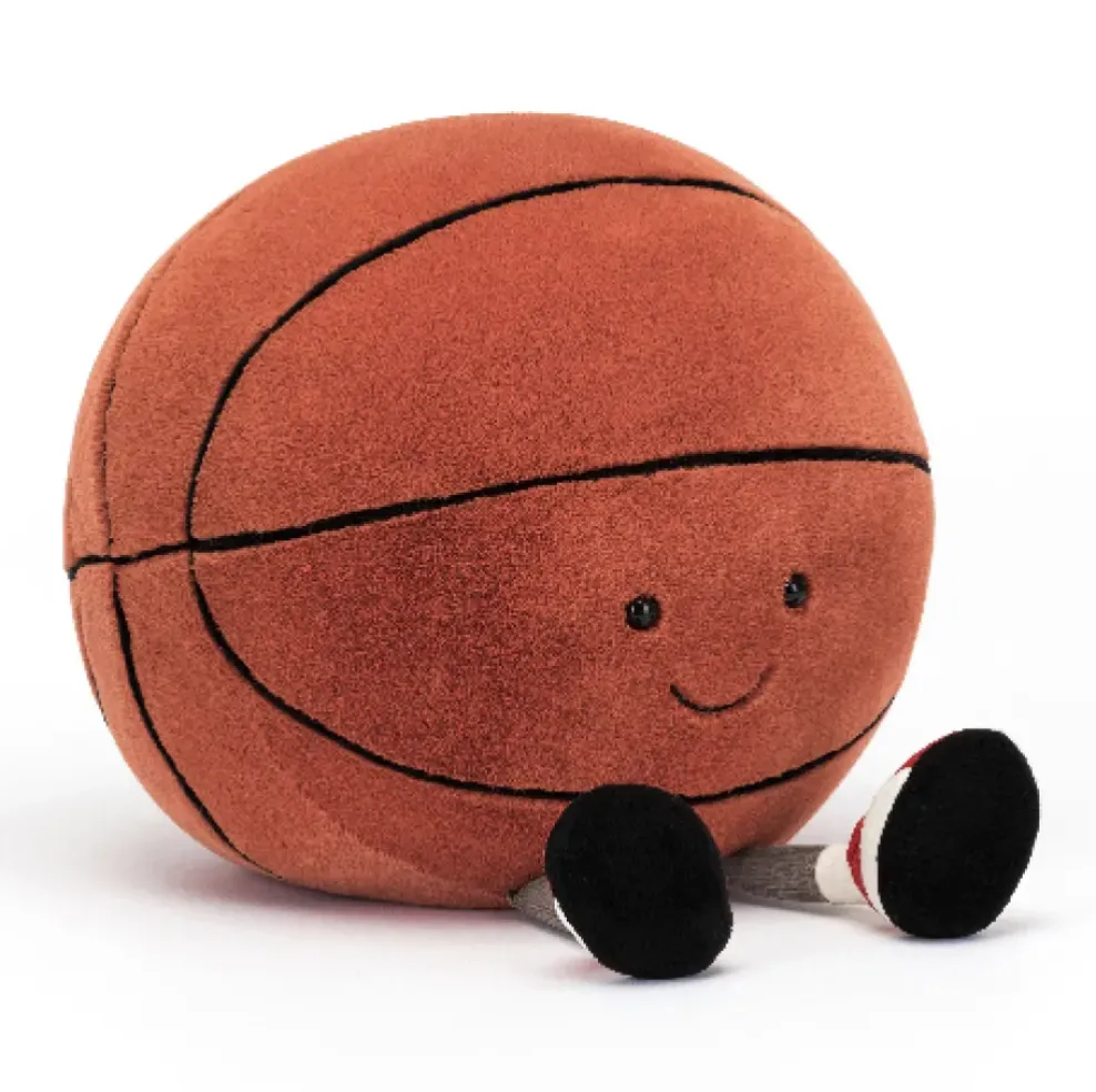 Amuseable Sports Basketball is a three-point champ! Super soft in orange fur with black piping detail and tri-color trainers, this leggy ball is a snuggly slam dunk!