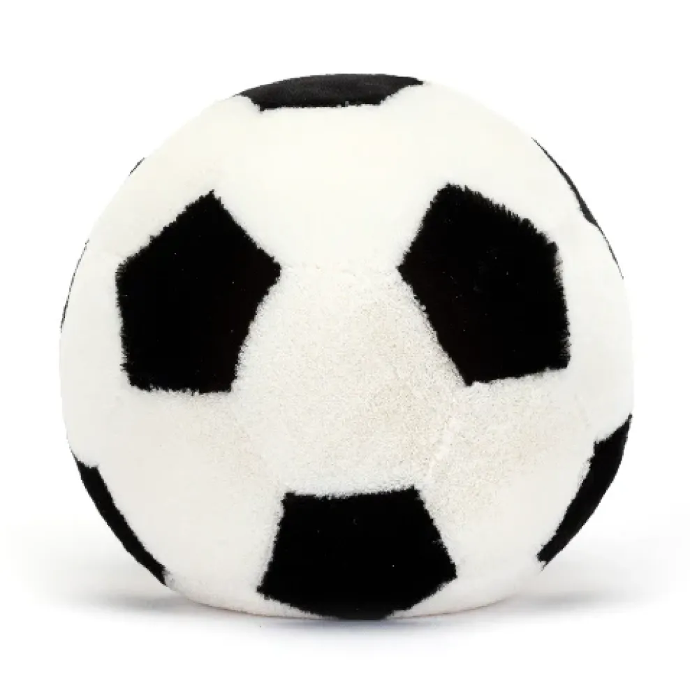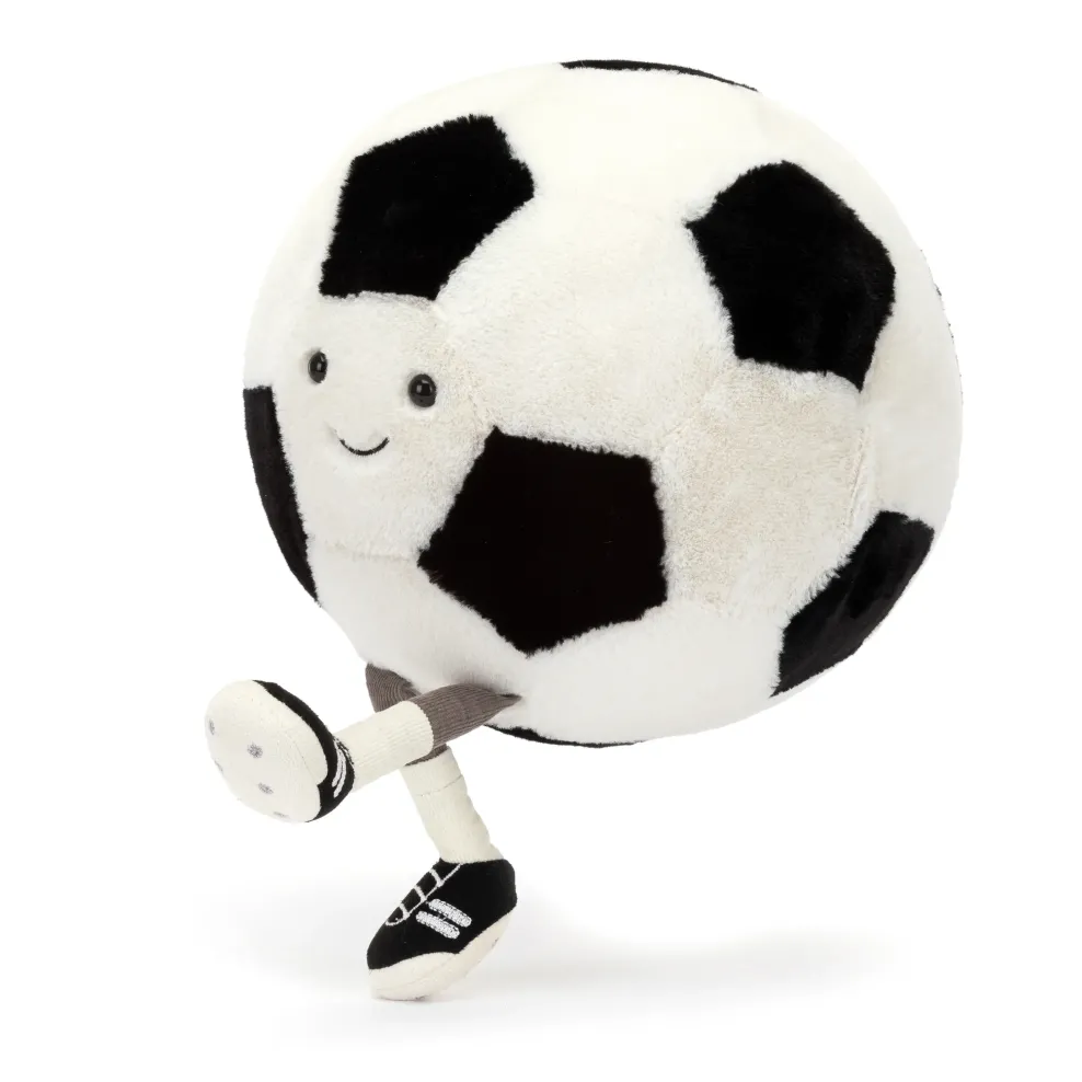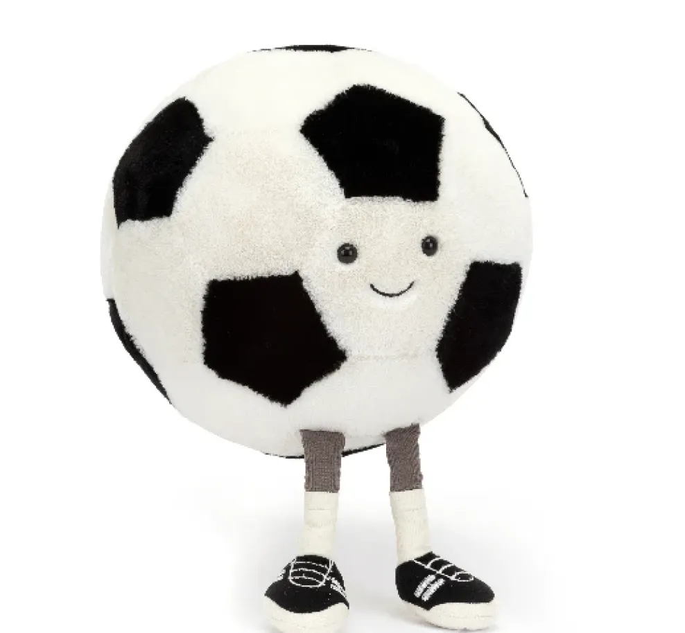 It’s cuddles at kick off with Amuseable Sports Soccer! Squishy and soft in black and white fur, this smiley soccer is ready to kick those long legs and score the winning goal in those fabric boots with stud detailing.