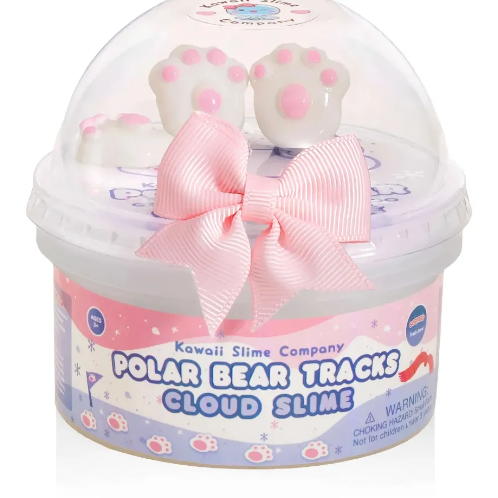 There is nothing more satisfying than a fluffy white Cloud Slime that sparkles in the sun and drizzles like a dream. Each Polar Bear Tracks smells like a crisp snow day, with notes of frosty musk, icy spring water and juniper berry and comes topped with 3 adorable paw “tracks” in the cutest soft pink color. Polar Bear Tracks is one of our best selling Holiday Slimes, a perfect gift for any Slime crazed family member.
