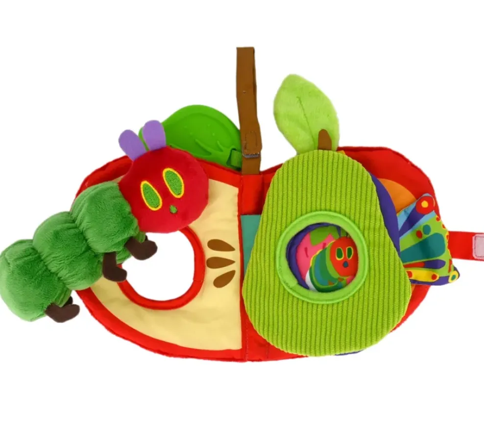 Eric Carle is one of the most celebrated children’s book authors/illustrators of all time, with over 103 million copies of his books sold worldwide. Inspired by the classic book, The Very Hungry Caterpillar™, this activity set will become your baby’s favorite! The activity apple has great activity features on each page, crinkle texture inside, and an attached leaf teether. The plush caterpillar is sized to fit through the hole on each page of the activity apple so your child can imitate the Very Hungry Caterpillar story. There is a hanging loop on top for on-the-go fun anywhere! Appropriate for all ages.