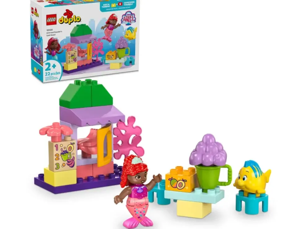 - Construction toy for Little Mermaid fans aged 2+ – LEGO® DUPLO® ǀ Disney Ariel and Flounder’s Café Stand building toy with fruit elements for fun food play for toddlers