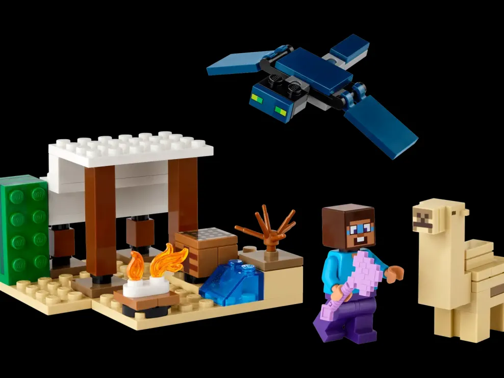 - Building toy with Minecraft® figures – Includes a minifigure of the popular Minecraft character Steve, a Baby Camel figure (for the first time!) and a flying Phantom figure with movable wings