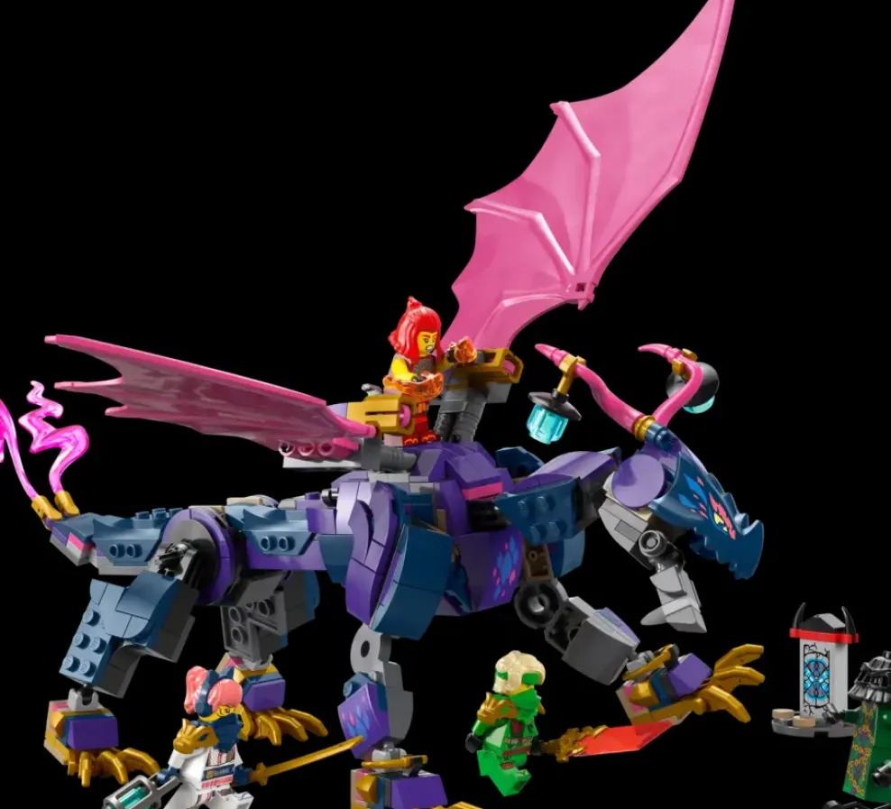 - Highly posable dragon figure – This large dragon model features a posable tail, legs, wings, head and jaw, 2 positions on its back for a minifigure, plus a stud shooter under each wing
