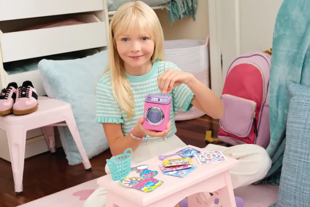 Check meowt: this brand new craft kit makes doing “laundry” fun! With cute cat designs and a magical color-reveal element, it’s a purrfect activity for creative tweens and teens. Fill the toy washing machine with water, sprinkle in fizzy soap, choose a load of laundry (beads) to add, and then pour in the bubble booster. Spin the closed lid, and remove the washing machine basket to see what color the beads are! Rinse and dry them to make a bracelet. Includes enough supplies to make 5 “loads”, and then the machine and basket make great accessories for doll houses. From Make It Real, for ages 8+ yrs.